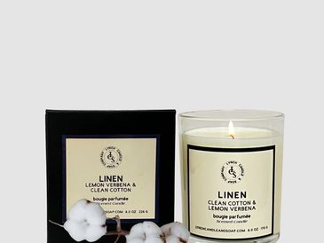 Our luxurious Lemon Verbena and Clean Cotton candle is perfect for creating a fresh inviting atmosphere.