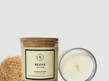 Vetiver candle, a calming and grounding complex scent, vetiver smells warm, dry, earthy and very distinct.
