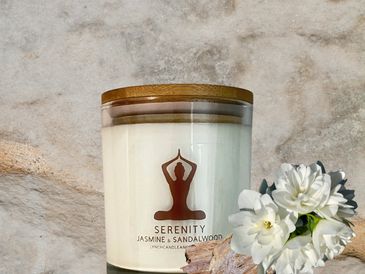SERENITY candle, the soothing blend of Jasmine and Sandalwood will bring elegance to any space.