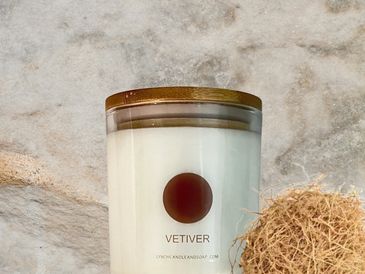 Vetiver candle, a calming and grounding complex scent, vetiver smells warm, dry, earthy and very distinct.
